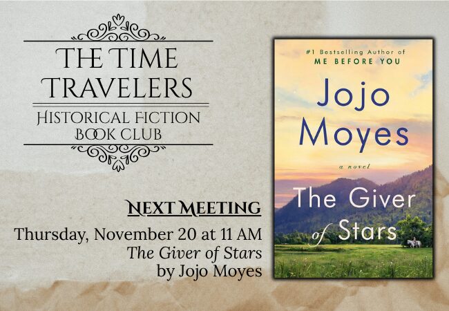 Time Travelers Book Group: “The Giver of Stars” by Jojo Moyes Nov 20 11:00 am - 12:00 pm Time Travelers Book Group: “The Giver of Stars” by Jojo Moyes Free