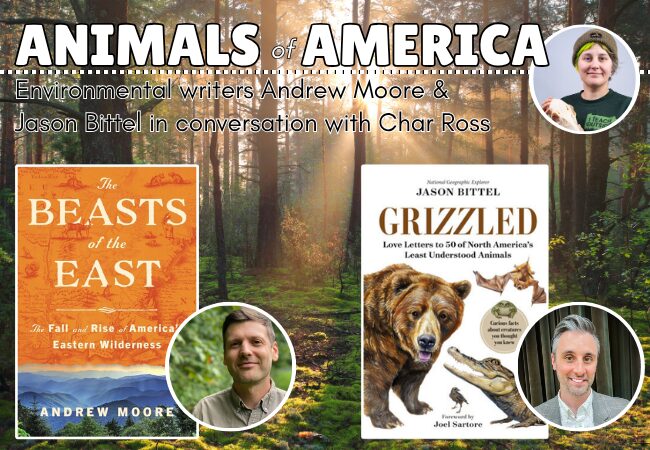Animals of America: Environmental writers Andrew Moore & Jason Bittel in conversation with Char Ross Jun 8 Animals of America: Environmental writers Andrew Moore & Jason Bittel in conversation with Char Ross 7:00 pm - 8:30 pm Free