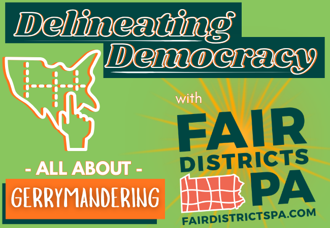 Delineating Democracy: All About Gerrymandering, with Fair Districts PA May 20 Delineating Democracy: All About Gerrymandering, with Fair Districts PA 7:00 pm - 8:30 pm Free